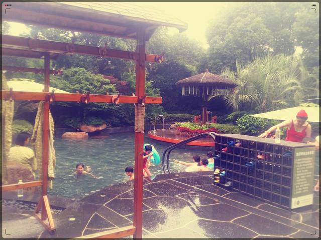 恐龙谷温泉就在恐龙园门口,恐龙主题度假酒店旁边,步行几分钟就到了。进去后,工作人员很热情,会给你专门的柜子,服务很好。温泉的汤池不是很多,晚上伴着五彩的灯光泡温泉,感觉很好,还有乐队在池边表演,泡累了,边上有自助饮水的地方。二楼是按摩,有拔罐,艾灸的。