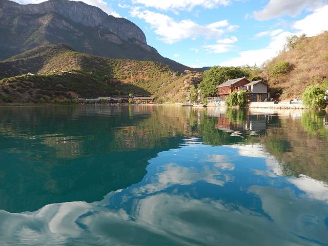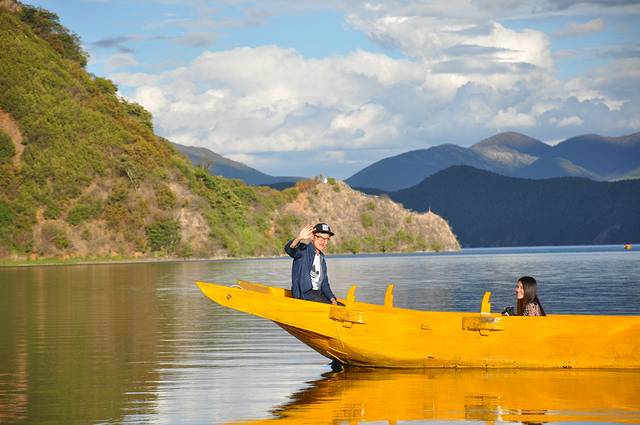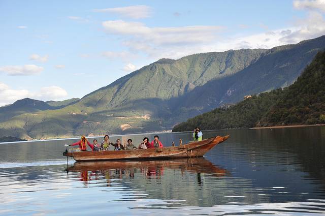 边走边玩,路很艰险,师傅开车的技术很好。泸沽湖的景色美极了,人间仙境啊!清可见底。晚餐师付还给我们加了菜,我们8个人有19个菜,太丰富了。晚上参加了篝火晚会。