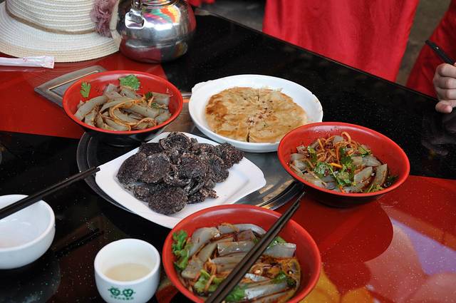 鸡豆凉粉,腊排骨,丽江粑粑,丽江灌肠、纳西火锅。最后一天我们同学在民生路的一家叫“纳西人家”的一家小菜馆吃的,味道很不错。
