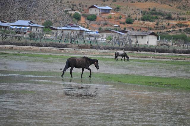 早上8点师傅来接,很惊喜,我们团只有6个人,坐的是8座的商务车,很舒适。深圳的一个,天津的一对新婚夫妻,贵阳的三个。途经拉市海,欣赏沿途田园风光,云南人所谓的海,不过是湿地而已。看了长江第一湾,在观景台上远远看去像是一条小河沟,到最上面的观景台还要收每人5元,没啥意思,看不到什么。去了丽江境内的上虎跳,也没啥意思,到了香格里拉的中虎跳就比较好看了,两山夹一虎,玉龙雪山和哈巴雪山,气势磅礴,下去的时候很轻松,上来的时候比较累。下午看了吉达姆草原,见到了许多可爱的藏香猪跑来跑去的,4点过到香格里拉,也叫独克宗古城,以前叫小中甸。看了世界上最大的转经筒,博物馆参观。晚上比较冷,住在州学校内的恒8酒店。