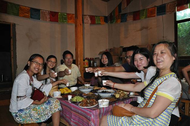 最丰盛的一顿团餐,8个人总共吃了19个菜,(其中司机阿桑哥给我们加了三个菜。)