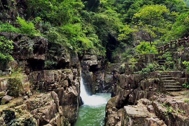 线路二: 谷口广场→峡谷入口→发电展览室→腾龙潭→黄龙潭→谷底游客服务点→风车门→水卷寨景区→一线天景区→一线天入口→生态观景步道→谷口广场(5㎞约240分钟)。