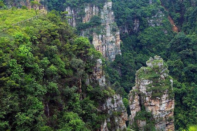 线路三: 谷口广场→生态观景步道→一线天入口→一线天景区→水卷寨景区→风车门→谷底游客服务点→通天梯→南门游客服务区→千米游廊→谷口广场(4㎞220分钟)。