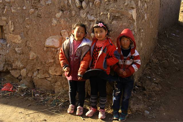 庄里的孩子,追着摄影爱好者要求给照相!可能是因为得到过甜头吧。我亲眼看见一堆人对这三个孩子不停的拍摄,然后她们还很配合的做着各种动作,再然后拿着糖,豆腐干啥的嘻嘻哈哈跑了。这张是把我堵住了,强烈要求拍照,我说我没带零食啊,宝贝们很大度的说没关系,看看照片就行了!