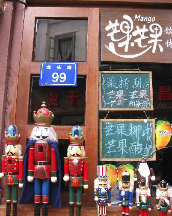 街道的两旁有很多各式各样的小店