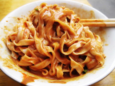 莲欢海蛎煎可谓是无人不知,无人不晓。在它的旁边,有一家局口街拌面,跟它一样是从原来新南轩旁的小巷子搬迁过来的,没有店面,十分简陋,随便在路边安营扎寨,摆几张低低矮矮的凳子,但每天却是人满为患,许多人特意跑到局口街,只为一尝美味的局口拌面。