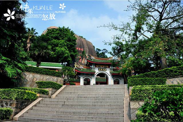 日光岩寺原名莲花庵,厦门四大名庵之一。利用一天然石洞所建,以整块巨石为顶,又称为“一片瓦”。现在的日光岩寺虽占地不大,但各式殿堂楼舍俱全,彩瓦翘檐,精美考究。
