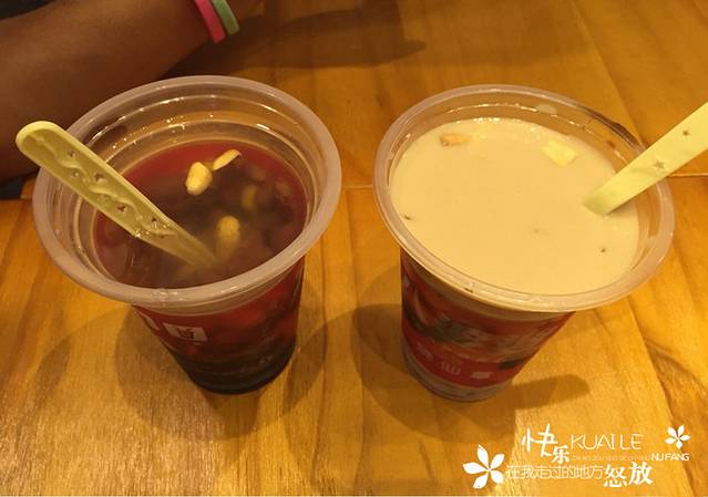 这在厦门是地道的奶茶了,味道很温和,里面的仙草冻也很绵软,买了两种口味尝了尝奶茶和蜂蜜;里面还有花生、芸豆、Q果等等,4元一杯