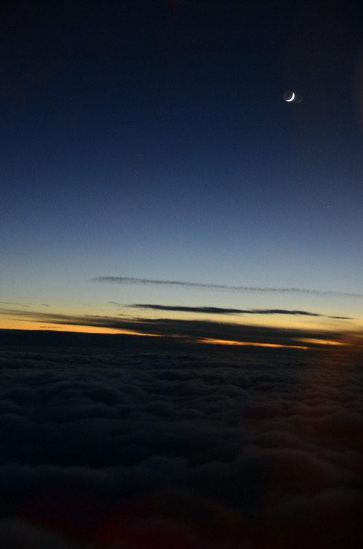 回程飞机上拍的傍晚,让这一弯明月代表我的不舍,再见,丽江。