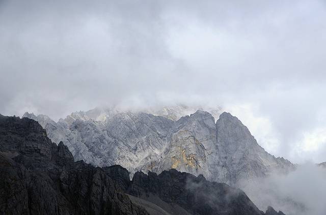 时值雨雾天,山上云雾缭绕,看不太清楚雪山轮廓,自然也少了很多可玩性。