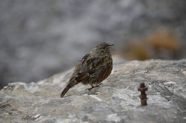 主惊讶的在4506米的山石上看到一只炸毛的小麻雀