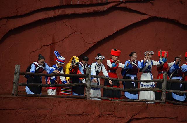 全程1小时左右,演员不能说训练有素,因为动作不甚整齐,但是少数民族的风韵是出来了。敲鼓,喝酒,骑马,殉情,祈祷——基本是围绕着这几个主题演绎。