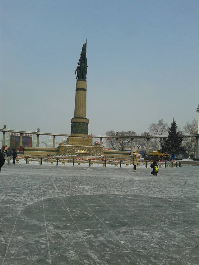 中央大街走到头就看到了防洪纪念塔,下了坡就是松花江了