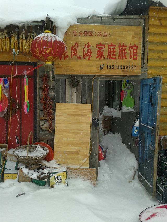 第三天的清晨其实是阴沉下雪的,那天大家都不舒服于是没照照片。一早闺蜜就敲门说小朋友又吐又拉,我赶紧拿了带来的妈咪爱,还好,吃了几次控制住了。订的下午的车回市区,闺蜜很着急,恨不得马上就带小朋友走,但这种地方玩起来好玩,想进出真的不方便。而我也开始隐约觉得胃不舒服,于是都没出门了。好容易等到下午赶紧带着孩子逃也似的离开了这里。如果你有空也可以上网搜下雪乡类似的事,很多,究竟是饮食、水源还是肠胃感冒各有说法。