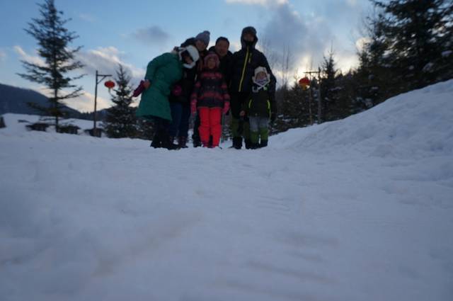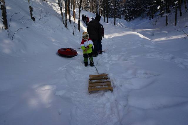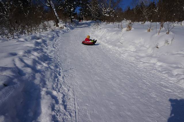 这是第二个地点,一个长长的坡道,小朋友们玩的不亦乐乎,连我们大人也轮流滑了几轮。比滑雪场划算啊,那边雪圈80一个小时,而我们租的25半天。不过在镇上好像禁止租这个,可能是出于安全考虑,到了山上就没人管了。