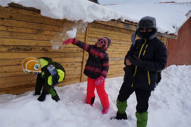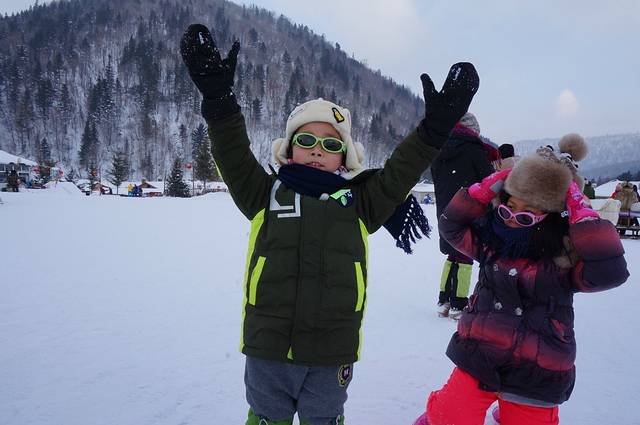 房子上都是厚厚的积雪,我们还专门买了护腿的,还是挺有用的,这个以后如果玩沙、登山都可以用,所以还算实用。小朋友们手套围脖都戴不住,虽然身体不觉得多冷,但光手一会手就麻木了,说明温度确实很低。