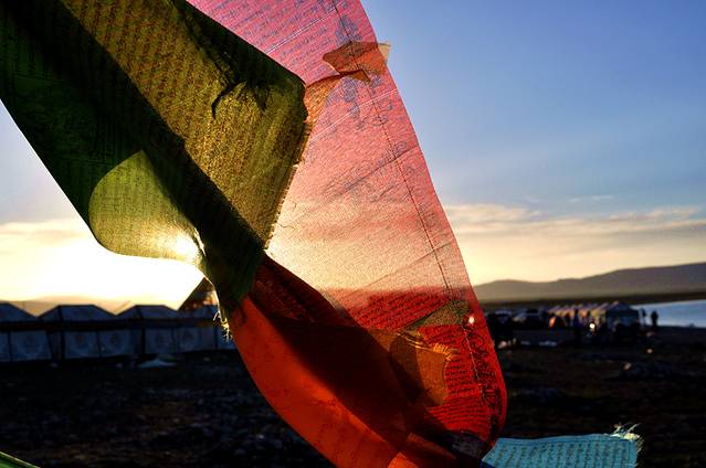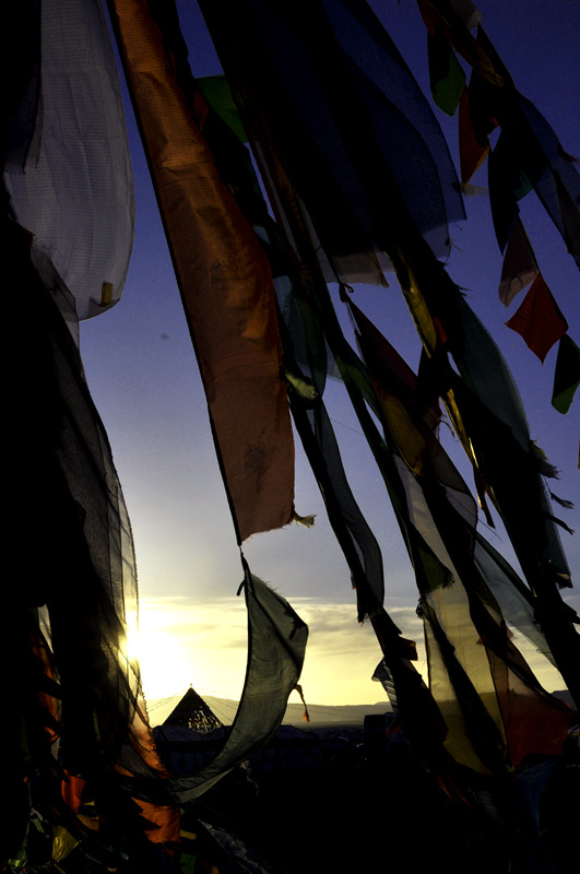 夕阳下的经幡