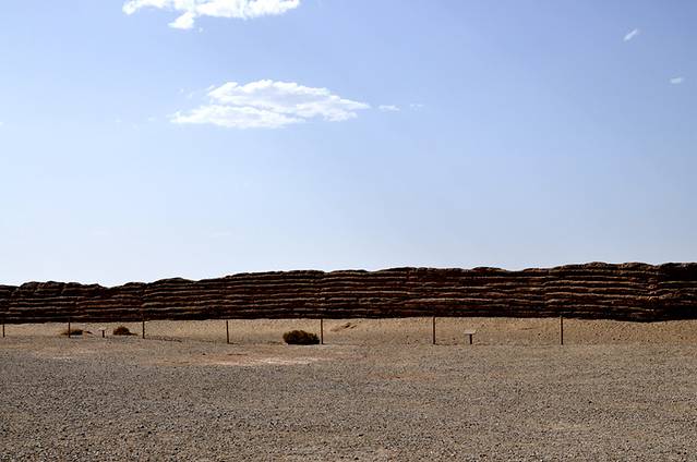 长城,真的是长城,看惯了高高大大崇山峻岭中的明长城,针对这种土墙,真的很难说他是长城,但是在汉朝,在几千年钱,这就是长城,在荒芜的大漠中,阻挡匈奴人的铁骑。