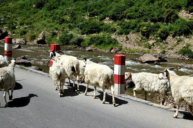 过马路的羊群。