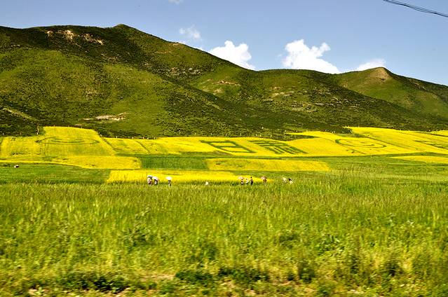 这是长途车上,路过甘肃扁都嘴,看样子这也是一处油菜花观光地,既然有门源,那就别留恋其他了。
