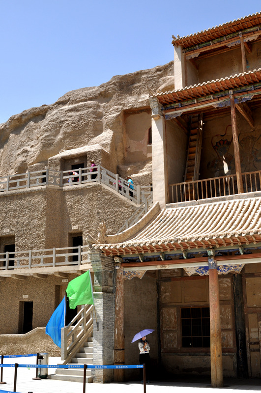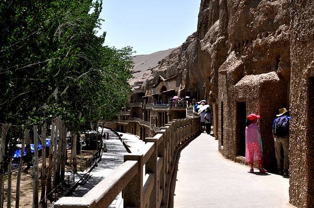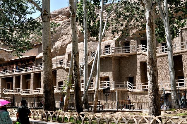 莫高窟,俗称千佛洞,坐落在河西走廊西端的敦煌。它始建于十六国的前秦时期,历经十六国、北朝、隋、唐、五代、西夏、元等历代的兴建,形成巨大的规模,有洞窟735个,壁画4.5万平方米、泥质彩塑2415尊,是世界上现存规模最大、内容最丰富的佛教艺术地。