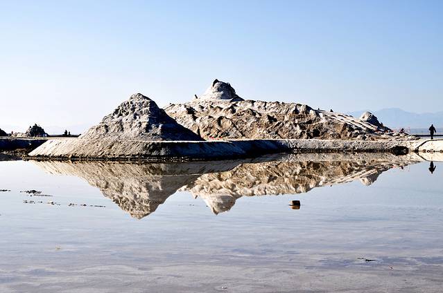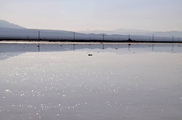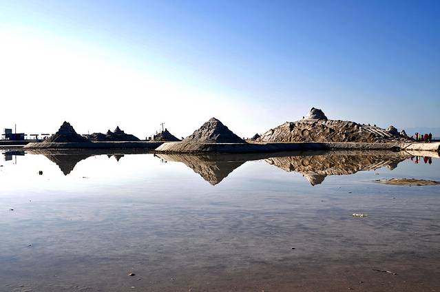 盐湖的水面如镜。