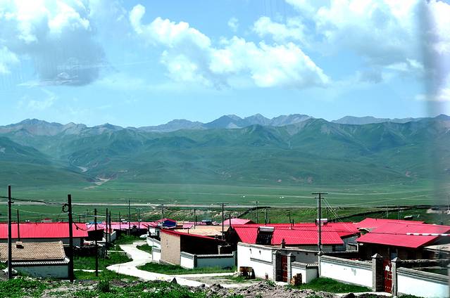 进入刚察县,这标语“党的恩情深似海”,绝对红色。