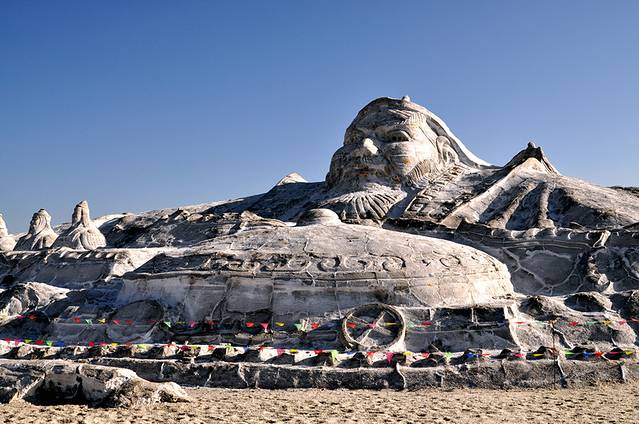 盐雕,成吉思汗。这里是盐场,古老的盐场,现在开发工业旅游,都在雕塑各种盐雕,实际有点不伦不类的感觉,实际大家更愿意看到更天然的景色。