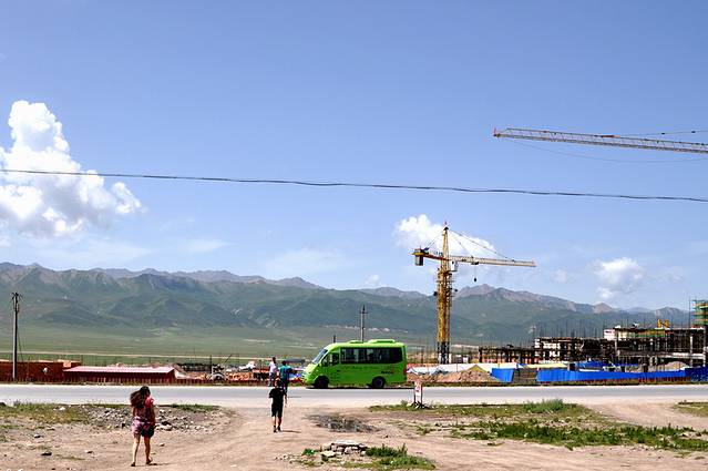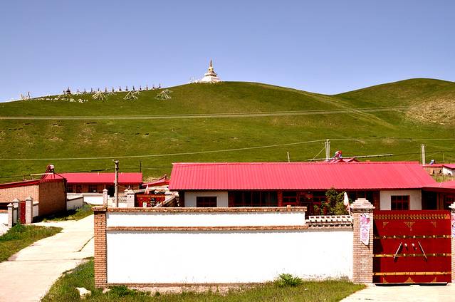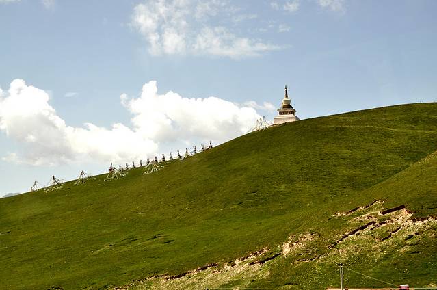 这是半路上的景色,开始有白塔,看样子进入藏区了。