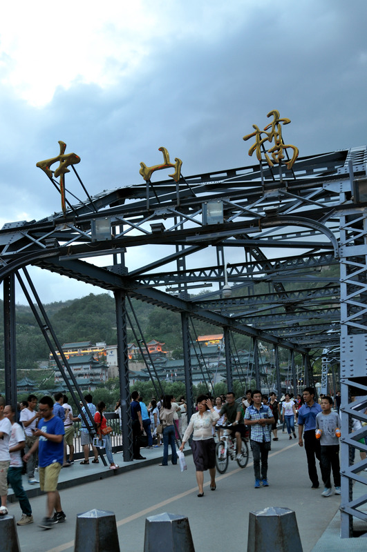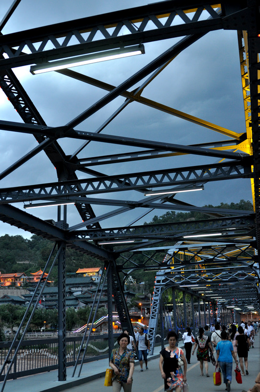 铁桥已经只能人行,不能走车了,但是历史印记还是很明显。