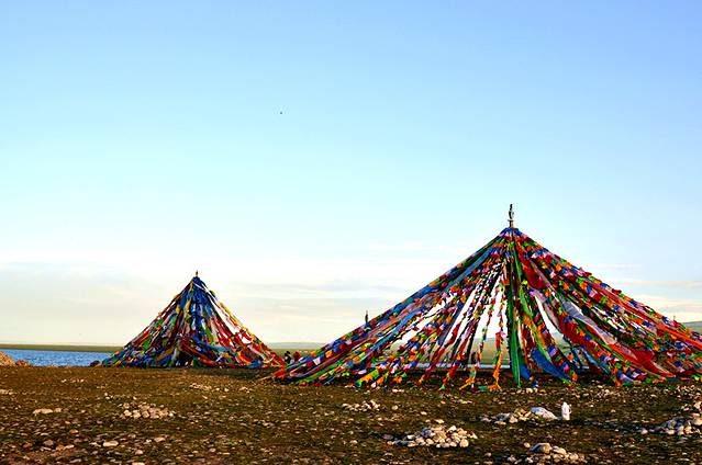 湖边的经幡,顺着湖边走走。