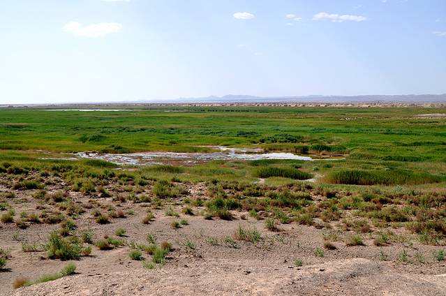 玉门关外,难得的草地,在敦煌、在大漠这就是湿地公园了,真正的湿地……