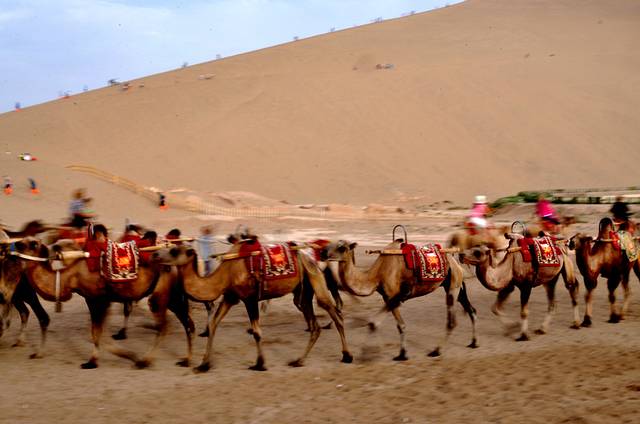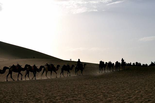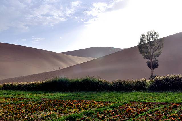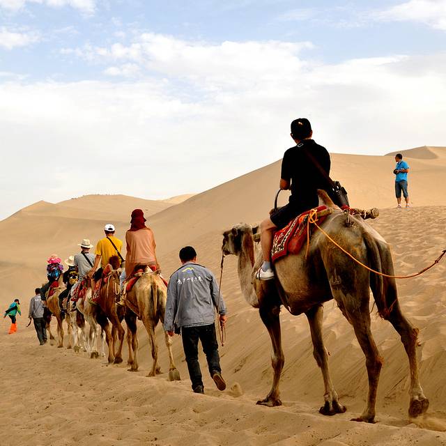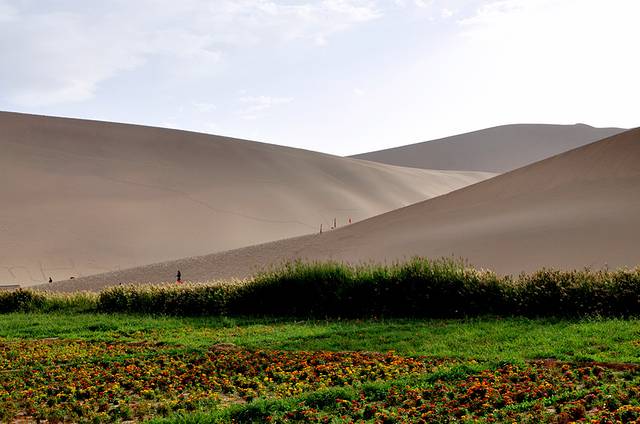 D2:敦煌东线:敦煌莫高窟、沙洲夜市、鸣沙山月牙泉;夜宿鸣沙山角下的客栈;