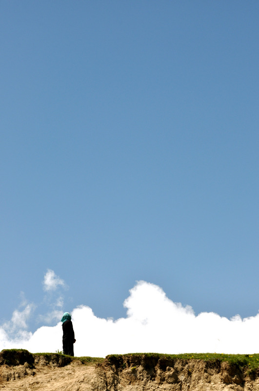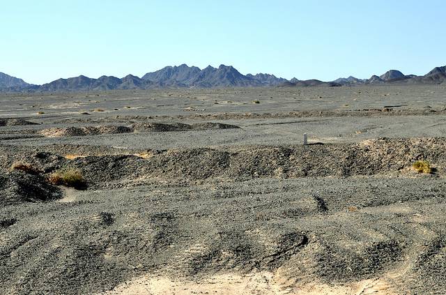 路上的大漠山脉与黑砂砾,构成了唯一的风景。苍凉、绝对的苍凉……