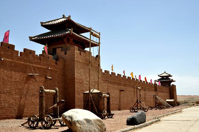 阳关已经开发成完善的旅游景点,重修了古城,罗列了各种古战场的模型,还有兵营、城墙……;