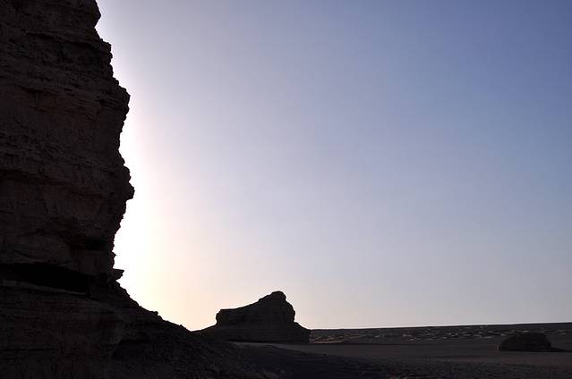 放下行李,跟着司机师傅就开始敦煌的西线一日游,后来才感觉到,第一天竟然是此次行程中最累、最辛苦的行程。和两个小驴友搭车西线,每人150元,两位小驴友让我们异常佩服,辞职的或者放假的,开始自己人生的旅行。忽略了各种人文景观,直奔各种大漠风景,今天的目标是雅丹魔鬼城的日落。