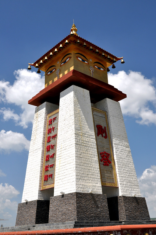 慈悲慧眼感恩塔,寓意厚实,文化底蕴浓郁,极具博达深渊的藏传慈悲慧眼感恩塔佛教文化色彩和古老厚重的传统建筑风格。慧眼感恩塔庄严气势、金碧辉煌,由塔基、塔座、塔锥和塔冠四部分组成,塔的四面均有13层台阶则代表了成佛的道路。