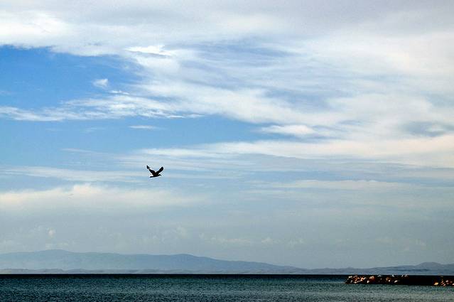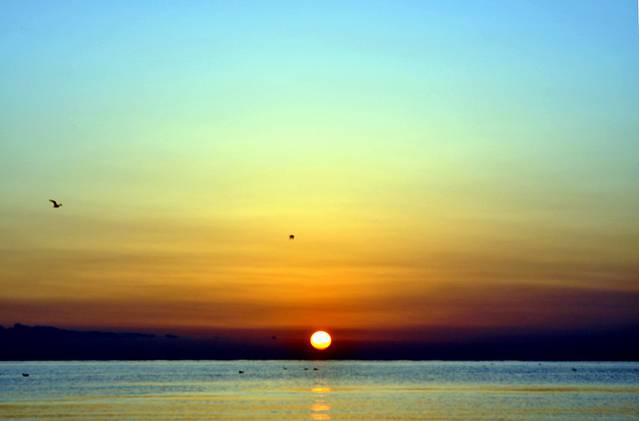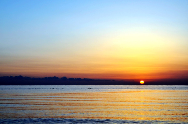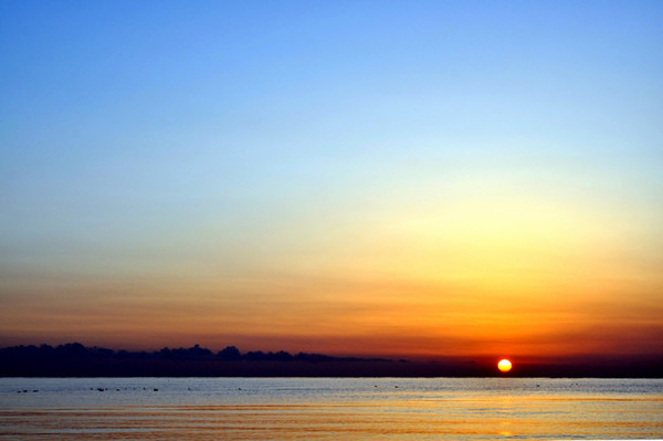 第九张:青海湖日出,追逐了一路的日落,也该有一天日出了,碧波、太阳、蓝天、飞鸟,都是这个的和谐。