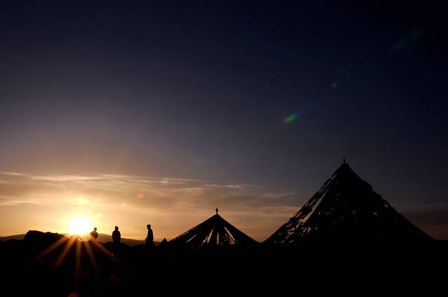 各种毡子的帐篷。
