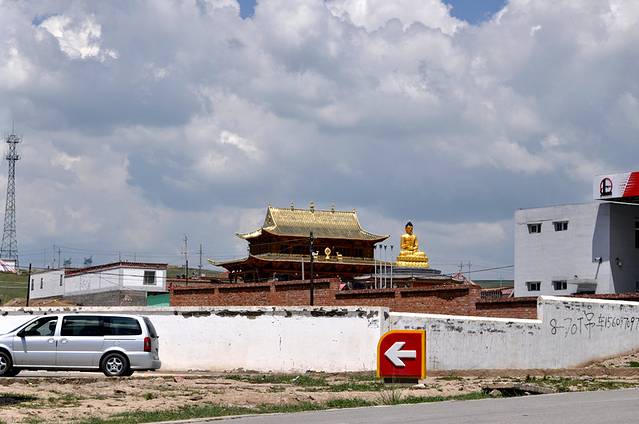驱车继续前行,绕着环湖西路过鸟岛、沙岛,等等知名景点,我们就飘过…….。途径一个县,看这金身佛,这可是真的镀金啊。