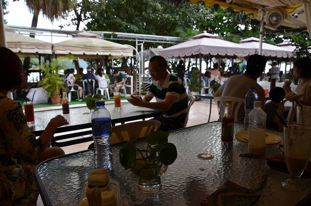 悠闲地在岛上睡到自然醒,早餐在德记茶餐厅吃了美味的咖啡加西多士,然后一路逛逛榕树湾大街上的小店,买点明信片等等小东西,缓缓散步去往洪圣爷海滩的方向,路上会路过阿婆豆花,比其他家的豆花要贵一港币,但是阿婆家的豆花确实是更加嫩的,吃豆花的时候刚好赶上下雨,棚子内一下子变得很拥挤,不过还是可以找到地方哒。到达洪圣爷海滩的时候天还是阴着,但已经有不少人在下水了呢,香港30几度的高温,下水凉快一下也是不错,洪圣爷旁边有家咖啡馆,我们又在那里吃了点东西,一边避雨,很多全家出游的人会聚在那里吃东西聊天~