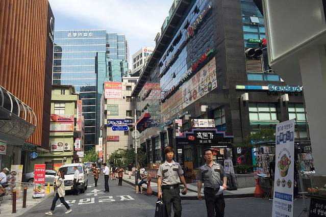 大家都在乐天免税店购物的时候,我独自跑到明洞的街道溜达。