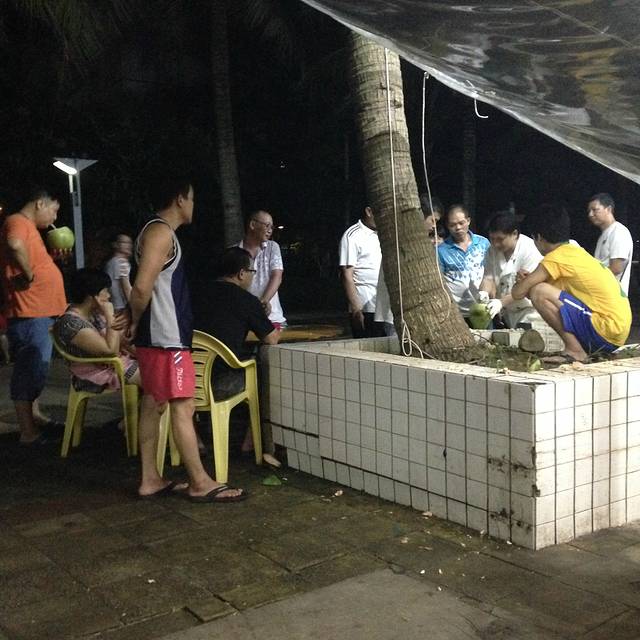 然后路过的行人都围在一起了 大家都在喝着无敌新鲜的椰子)