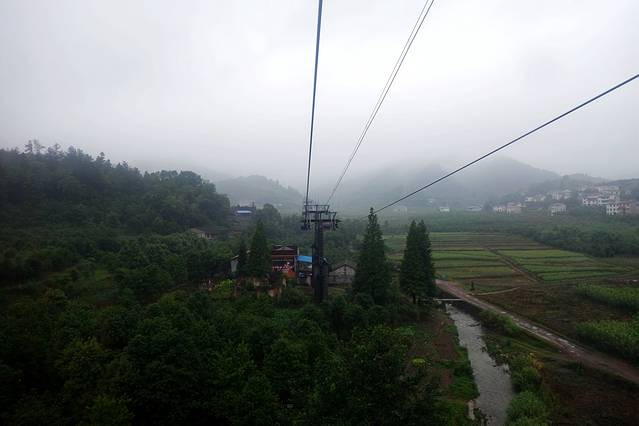 这条天门山索道有七公里半长,世界第一,单程要走半个小时左右,快到天门山顶的那一段几乎垂直上升,晴天时无比惊心动魄,可惜我们来的时候有雾。
