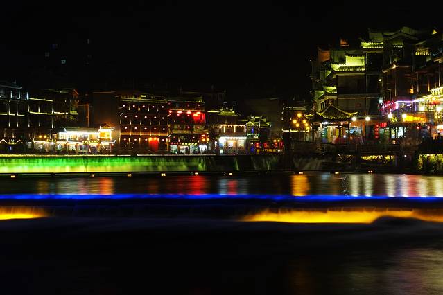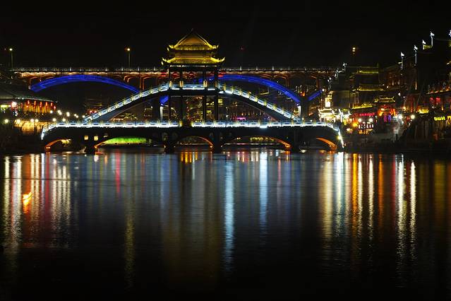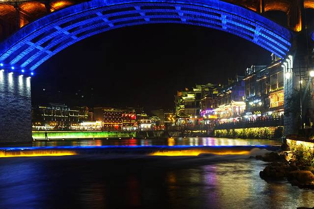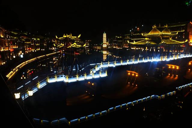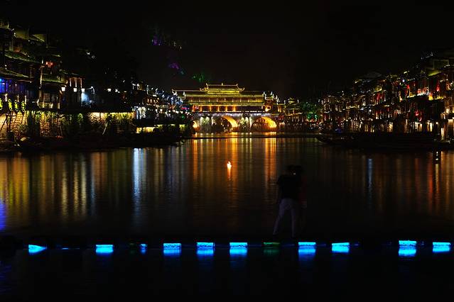 来到了古城北门外的沱江边,这里是凤凰夜景的核心景区。