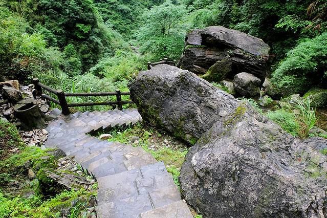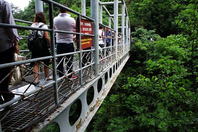 本来去天波府需要走过晃晃悠悠的索桥,但现在这个相对好走的索桥正在维护,要从陡峭的栈道下到半山腰再爬上对面的这座孤峰。