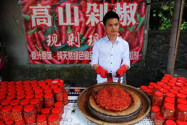 哈哈,这就是湖南有名的剁辣椒啦,也是湖南菜好吃的第一秘诀。剁辣椒又名剁辣子、坛子辣椒,和其他地方的辣椒配料不同,剁辣椒本身就可以直接食用,味辣而鲜咸。正宗湖南剁辣椒水分少,颜色暗红,口感不酸。而湘西南一带的剁辣椒带有当地特色的酸味,因为湘西人“无酸不入口”,因此在这些地方的剁辣椒是“酸剁辣椒”。