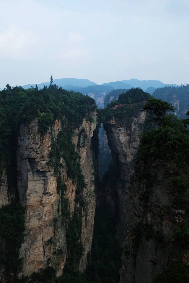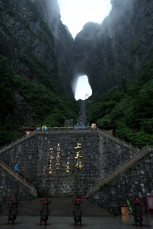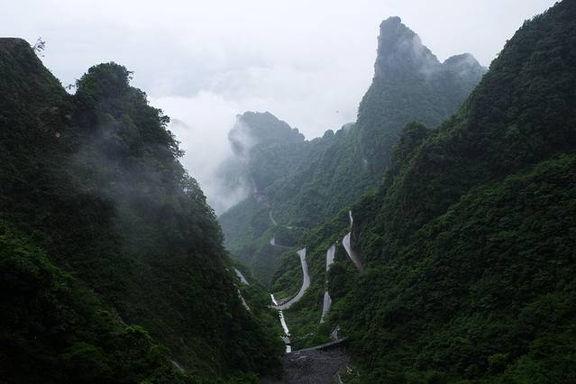 最后一天天气不好,天门山应该放弃的,但是因为上次就错过了,这次实在不想再一次错过,抱着万一有云海的期望,还是上了天门山。结果虽然也还算勉强可以,但远远没有领略天门山的雄奇。建议大家一定要晴天的时候来,这里和武陵源的山色完全不同,雄伟大气,值得一游。