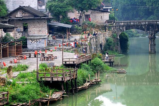 这里曲折幽深的大街小巷,临水依依的土家吊脚木楼,青石板铺就的五里长街,处处透析着淳厚古朴的土家族民风民俗。