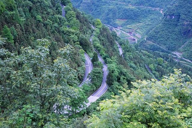 这是从天门洞下山的盘山公路,也被称为“通天大道”。这里比前几天看到的矮寨公路还要险峻很多,而且造价非常惊人,整个公路全长约十公里,造价超过一亿人民币。